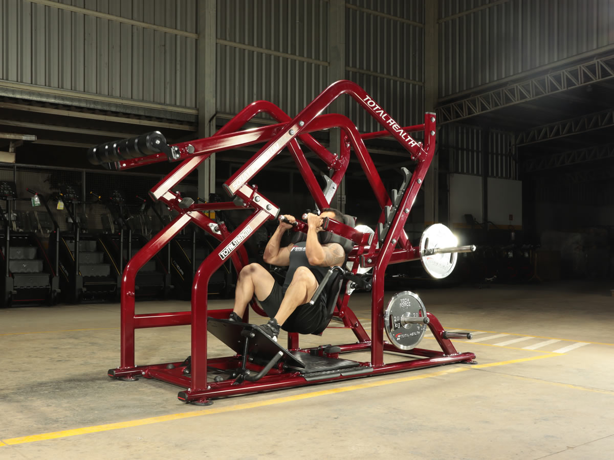 Essa funcionalidade de redução de resistência na parte mais baixa do agachamento é fundamental, pois permite que o usuário adicione mais sobrecarga e mais carga total na máquina. Mesmo com cargas elevadas, é possível trabalhar os glúteos com grande amplitude e um excelente alongamento muscular.