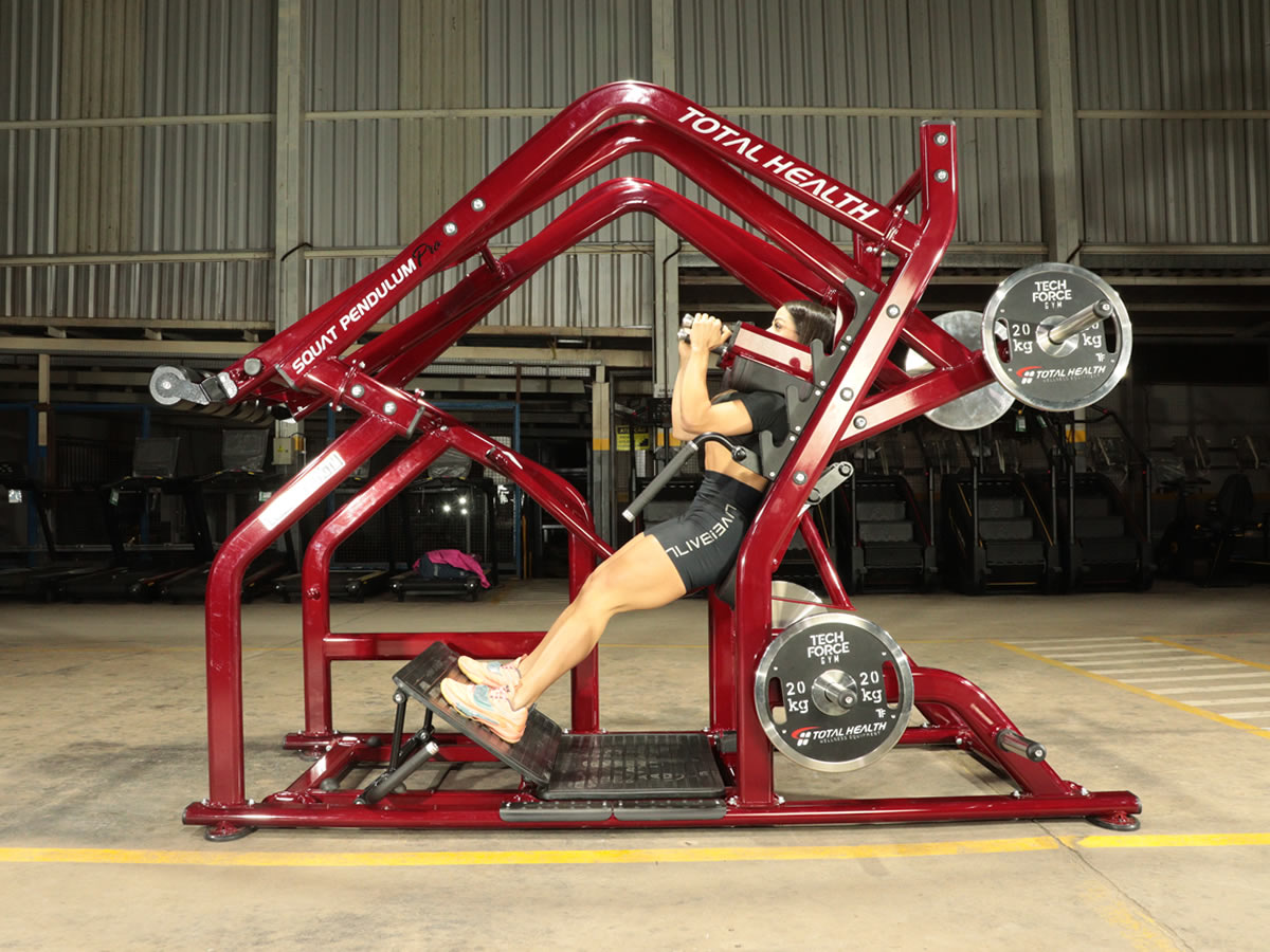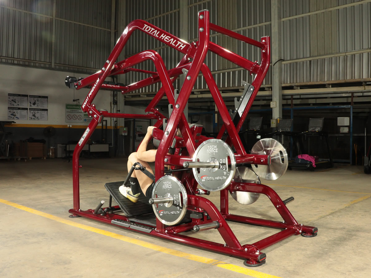 O Squat Pendulum PRÓ garante uma boa amplitude e uma carga excepcional em todas as fases do agachamento, otimizando o conforto e a eficácia.